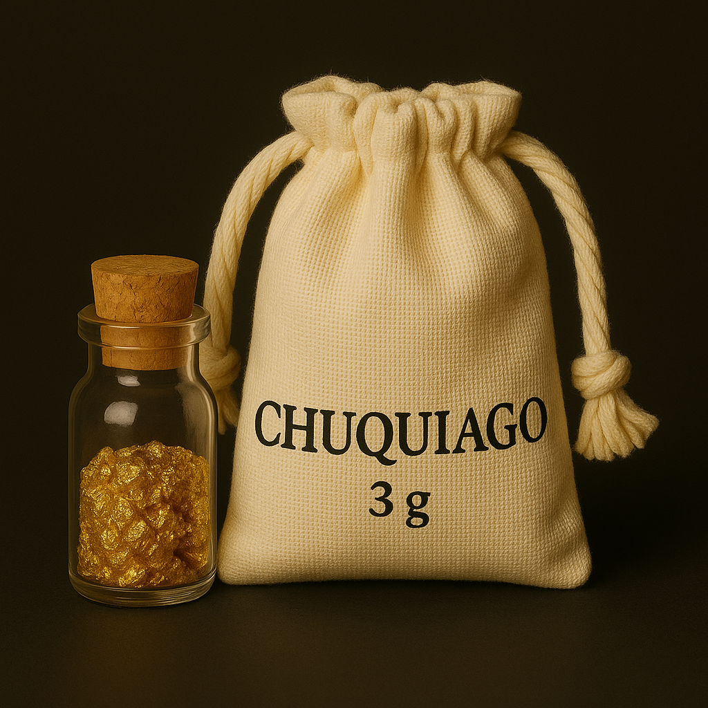 Cada frasco contiene oro en chispa, de ley 940, extraído manualmente sin químicos ni mercurio. Ideal como inversión, regalo o pieza de colección con historia.